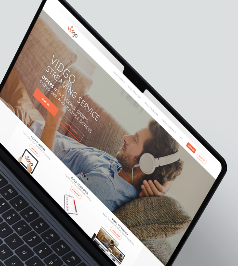 During the launch of Vidgo, streaming was relatively new. Not only did I have to inform the visitors of the technology but I also had to market the benefits in an approachable way. I also needed to develop the brand. This involved having the right imagery, the perfect typeface and the creation of a welcoming, safe user experience.