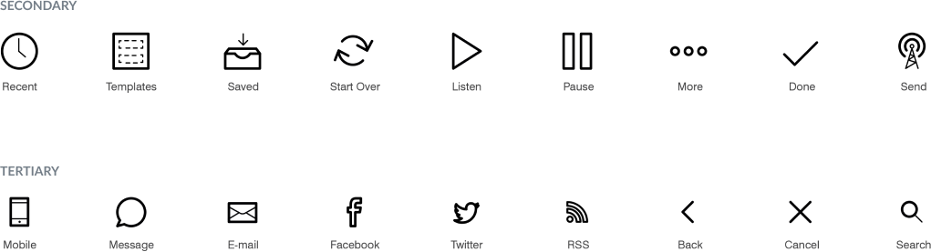 Icons were created to provide a visual aid for communicating areas and actions the user wants or needs. The icons helped set the tone and make the app more enjoyable to use.